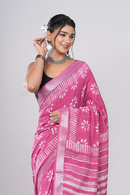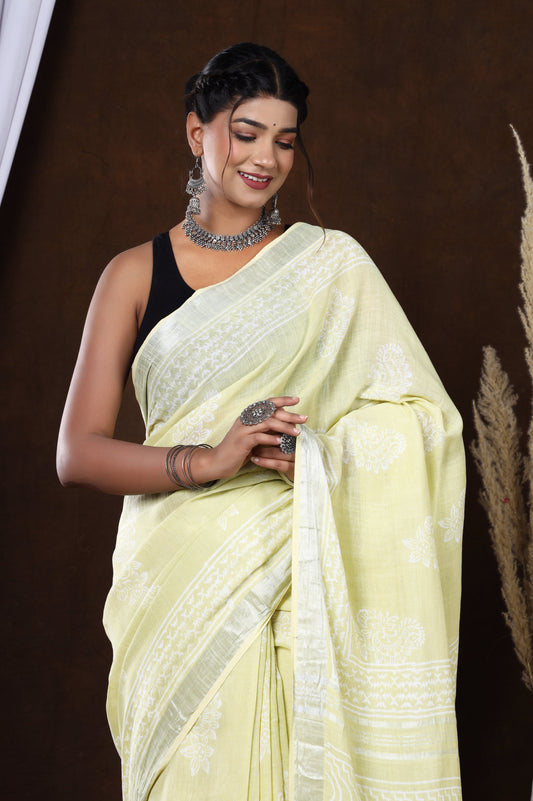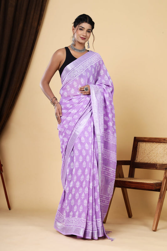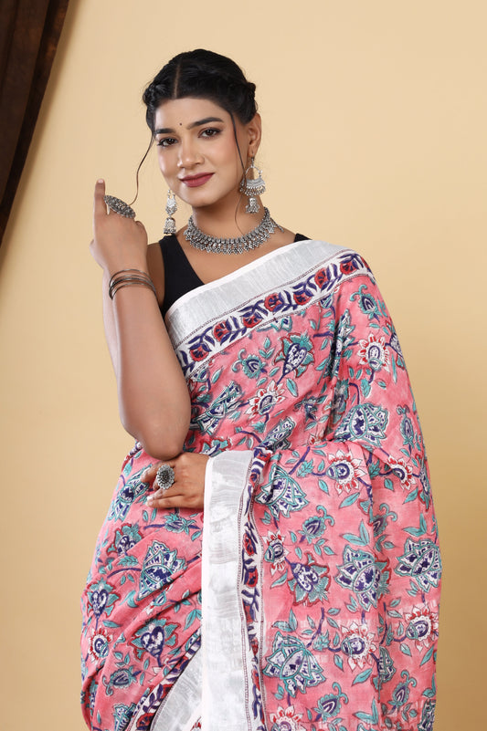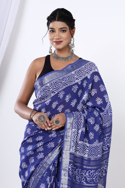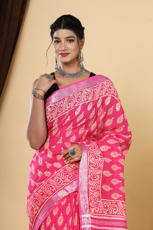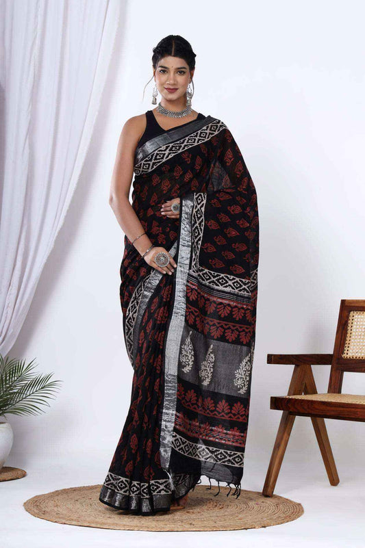 Srishti Textile Handblock Printed Linen Saree