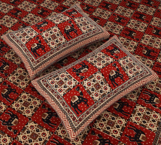 Srishti Textile Rajasthani Red Cotton Bedsheet