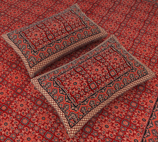 Srishti Textile Red Ajrakh Geometric Bedsheet