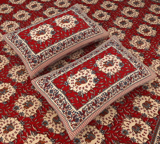 Srishti Textile Red Cotton Printed Bedsheet Set