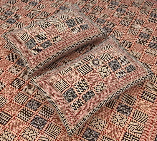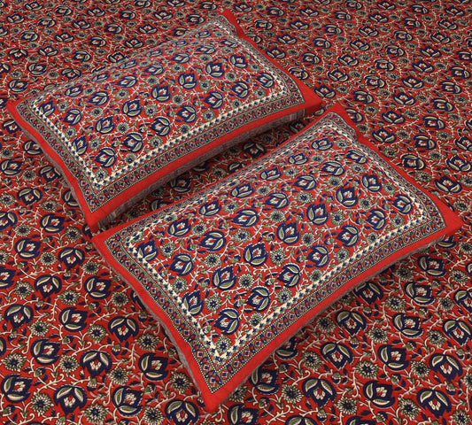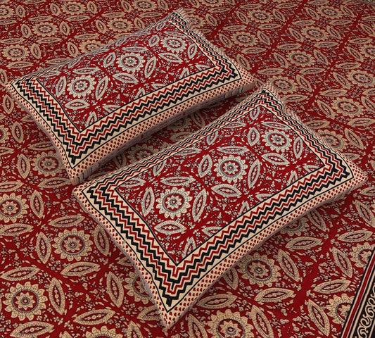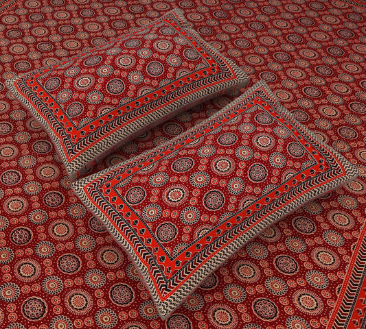 Srishti Textile Red Jaipuri Ajrakh Bedsheet Set