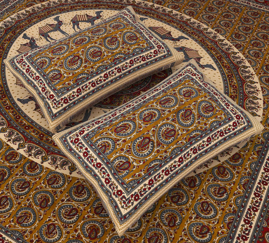 Srishti Textile Yellow Orange Indian Bedsheet Set