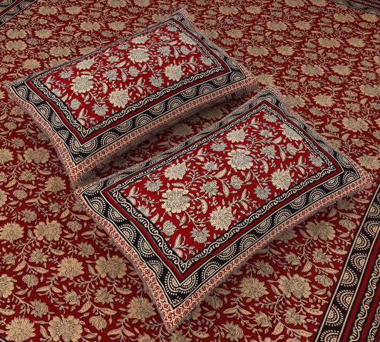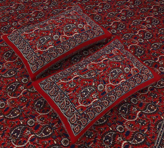 Srishti Textile Red Floral Kalamkari Bedsheet Set