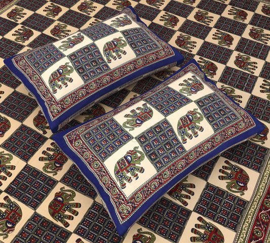 Jaipur Print King Size Cotton Bedsheet Set – Handcrafted with 2 Pillow Covers