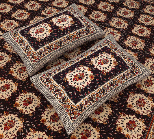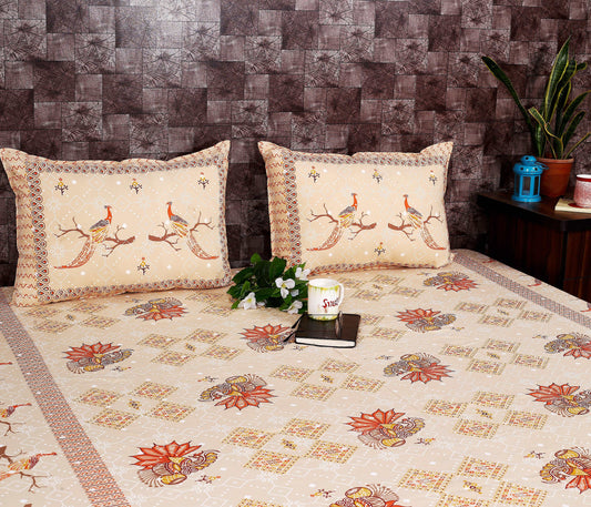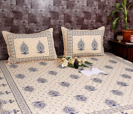 Srishti Textile Bagru Peacock Cotton Bedsheet Set