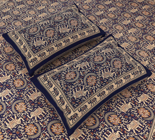 Srishti Textile Bagru printed king size bedsheet - Elephant