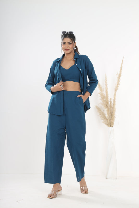 Classy Blue Khadi Co-ord Set by Srishti Textile
