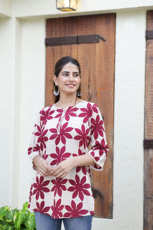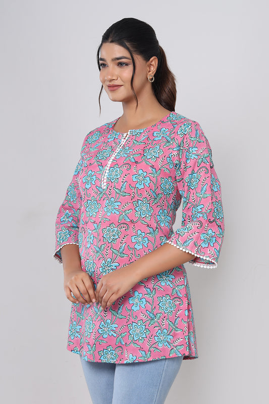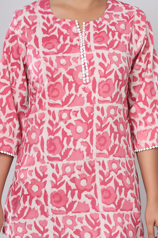 Srishti Textile Pink Floral Cotton Kurti for Ladies