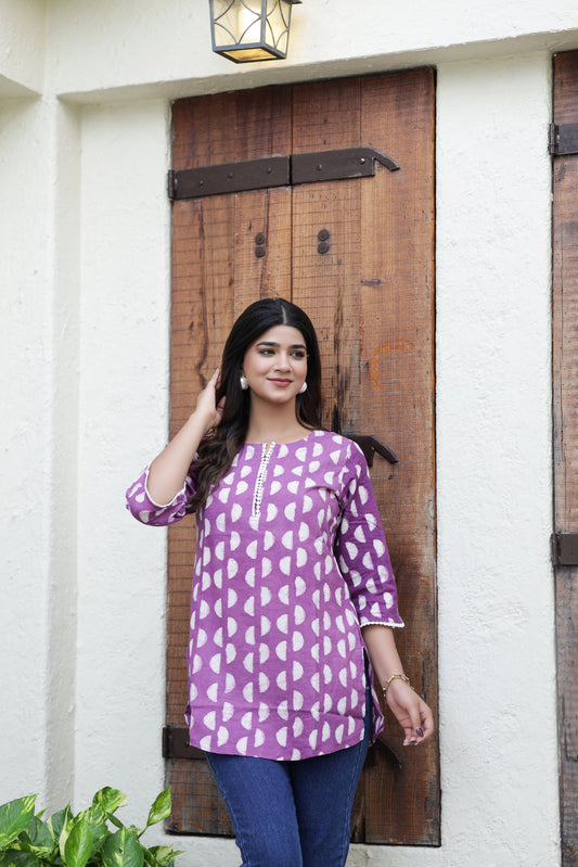 Srishti Textile Purple Handblock Kurti for Stylish Comfort