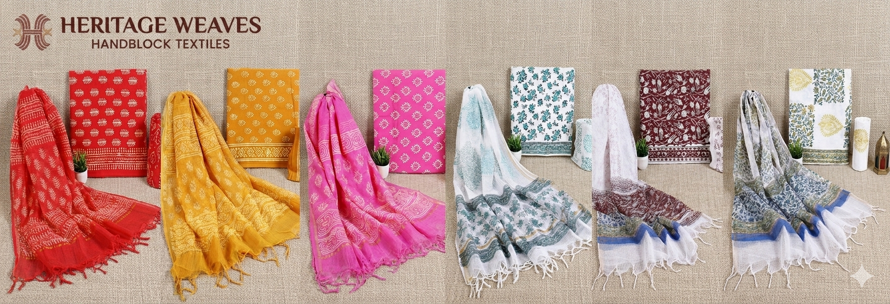| Festive Chiffon Suits | Cambric Cotton + Flowy Chiffon Dupatta. Bagru & Shibori prints. | ₹450–₹750 / set | 20 sets | Festival season, social commerce |